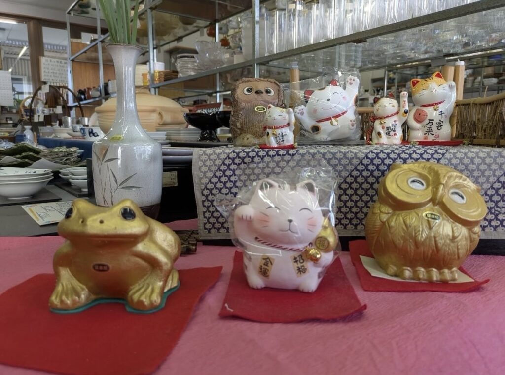 店頭には、思わず微笑んでしまうような縁起物の置物が並んでいます。