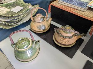 そして欠かせないのが「土瓶」という器。急須のようでいて、料理のために工夫された形はとても愛らしく、土の温もりを感じられます。保温性が高く、具材の旨味を逃がさずぎゅっと閉じ込めてくれるのも魅力。手仕事ならではの釉薬の色合いや、取っ手の編み込みの表情もひとつひとつ違っていて、器そのものが小さな芸術品のようです。